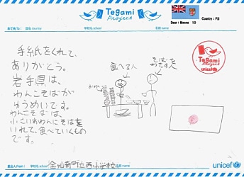 岩手の名物わんこそばをフィジーの子どもたちに紹介したお手紙。 Introducing local specialty, Wanko-Soba, to Fijian children