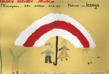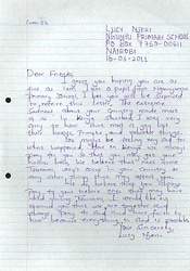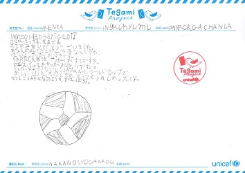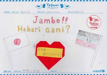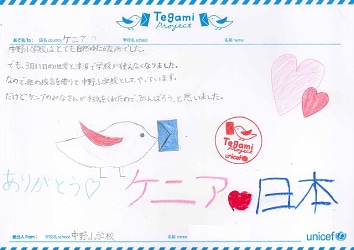 お手紙をもらって「がんばろう」と思いました。 Your letter from Kenya encouraged me.