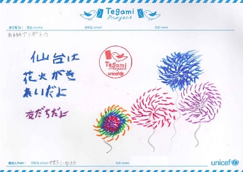 仙台は花火がきれいだよ。友達だよ。 Fireworks in Sendai city are beautiful. We are friends.