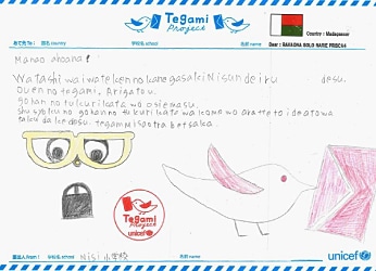 日本のみんなにお手紙が書けてうれしいです。マダガスカルについて教えるね。 I’m happy that I could write a letter to you. I will tell about Madagascar.