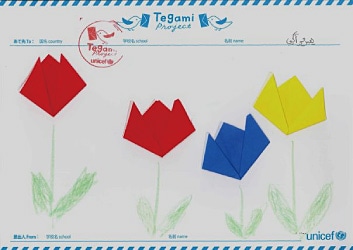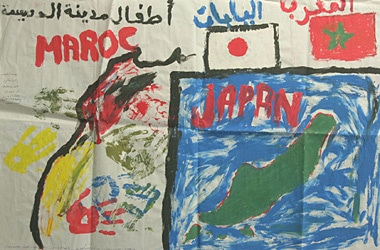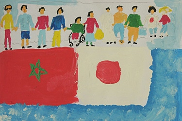 Children of Morocco and Japan take each other’s hands across the sea.