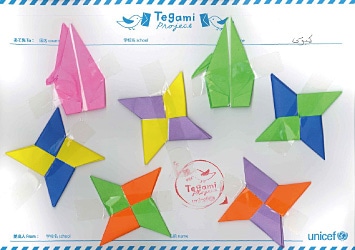忍者がつかう手裏剣をたくさん折って貼ったお返事。 Ninja stars made in origami