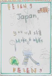 絵やお手紙で元気をもらった分、 自分たちにできることを一生懸命がんばっていきます。 Your drawing and letter really cheered me up. I'll do my best to move forward.