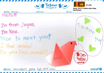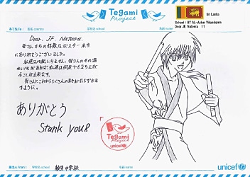 ありがとうの気持ちと自己紹介が英語で書かれたお返事。