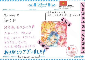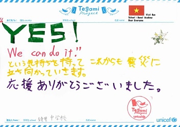この震災で大切なものを失いました。 けれども、このお手紙を読んですごく元気をもらいました。 We lost so many things in this disaster. But your letters really cheered me up.