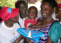 シエラレオネにおける5歳未満児および妊産婦の死亡率は、世界でもっとも高い値を示しています。はしか、マラリア、ビタミン A 欠乏症、寄生虫病は、幼い子どもたちにとって最大の敵です。 予防接種で防ぐことのできる病気のうち48%がはしかによるものです。マラリアは、5歳未満児の死亡原因の33%を占めています。 マラリアを予防する効果のある蚊帳の中で眠っている子どもはわずか15%。しかし、この新しい活動によって、その割合は劇的に増えるだろうと予想されています。 |
