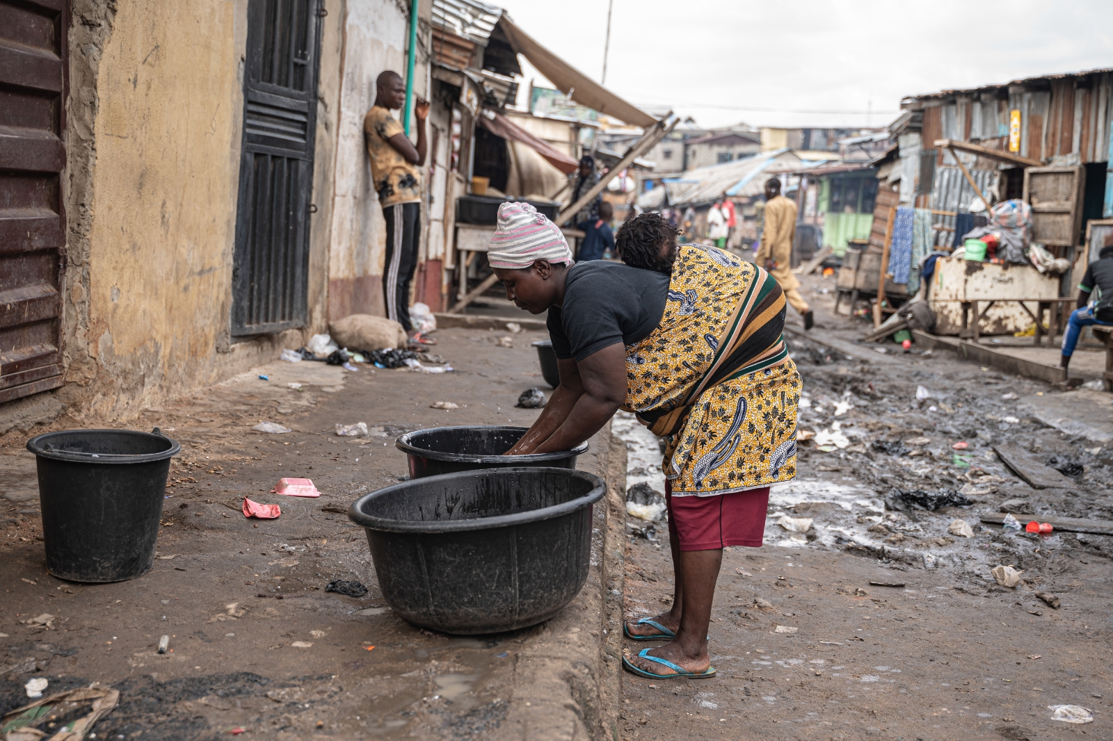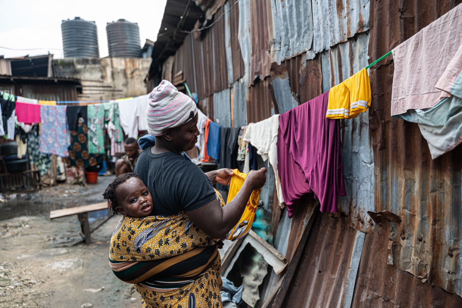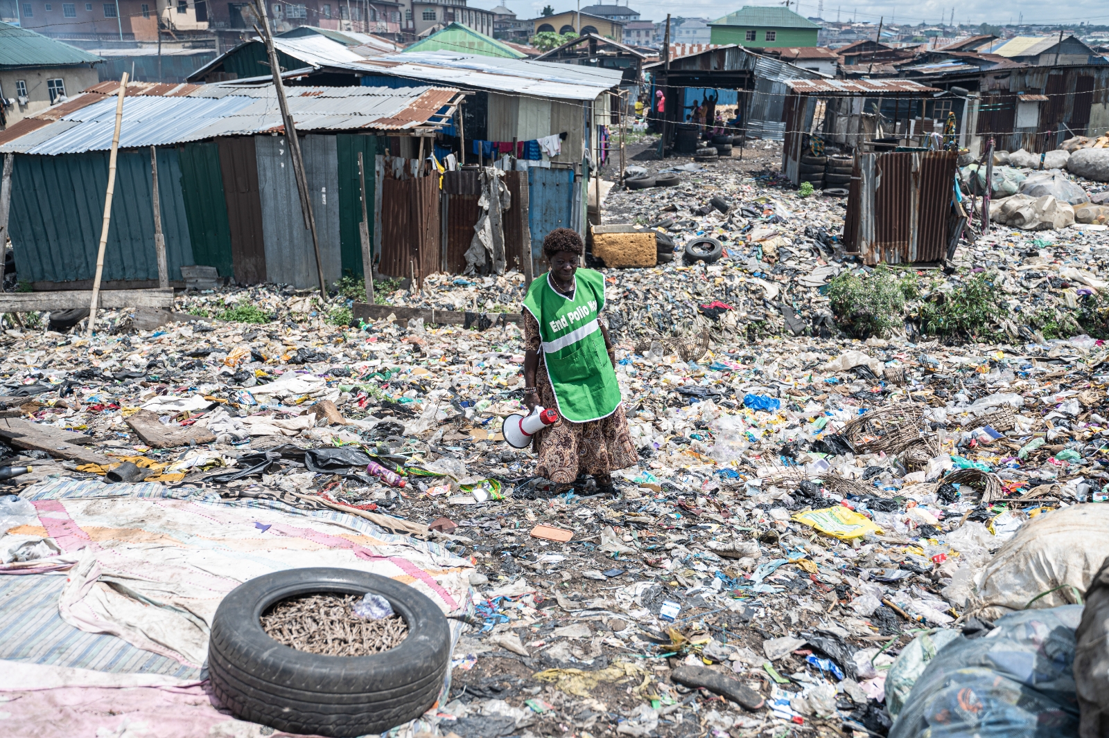 ナイジェリア経済の中心地であるラゴスは、貧富の格差が大きく、ジェムラットさんが働くコソフェ区の市場の裏には、スラム街が広がっています。通称「ゲンゲレ地域」と呼ばれるこのあたりは、かつて市場の卸売業者が多く暮らす街でした。しかし今ではゴミがあふれ、犯罪が横行し、水道や衛生設備、教育といった基本的な社会サービスも整わない貧困地域になっています。ジェムラットさん親子の家もこのゲンゲレ地域にあり、最寄りの保健センターまでは往復10キロ。時間も交通費もかかるため、なかなか通うことはできません。